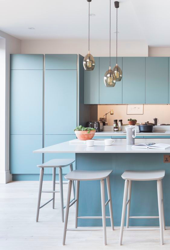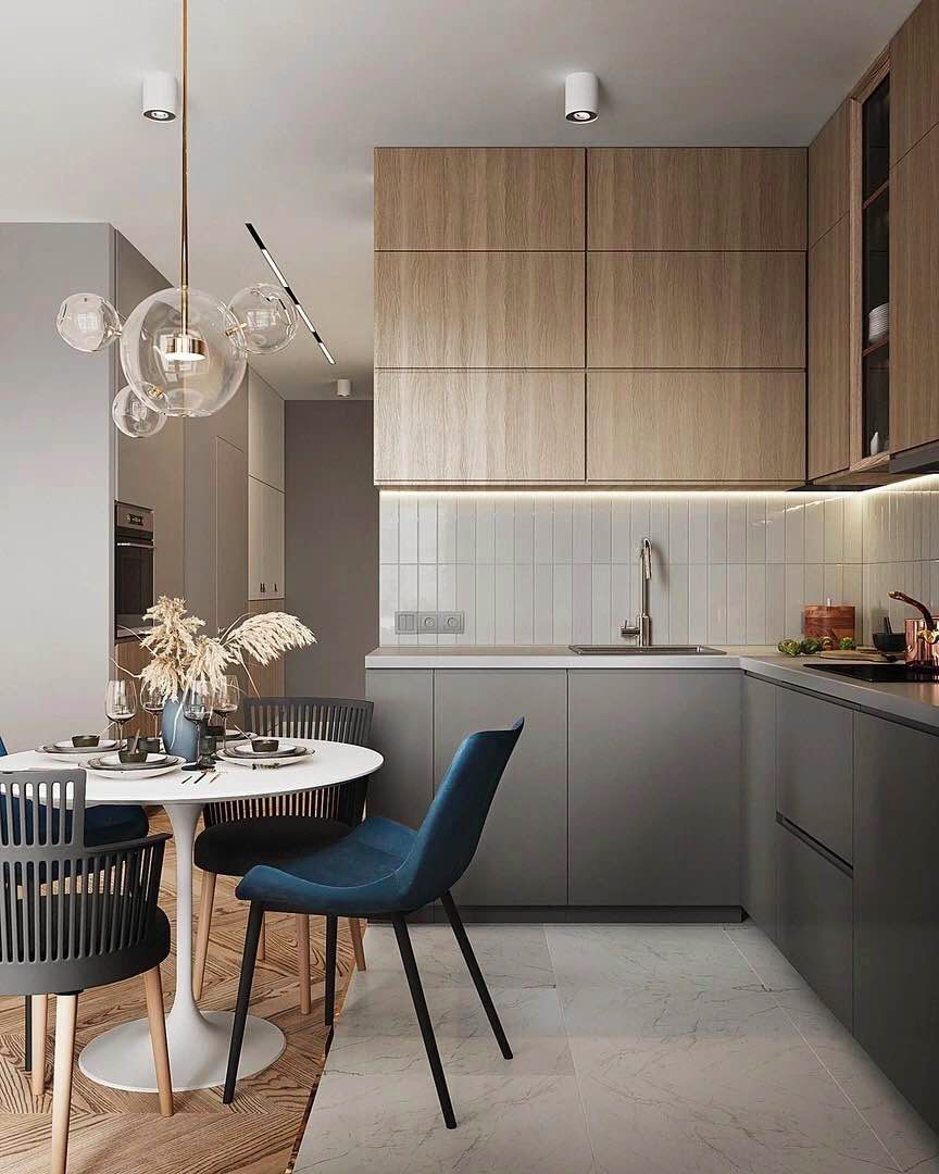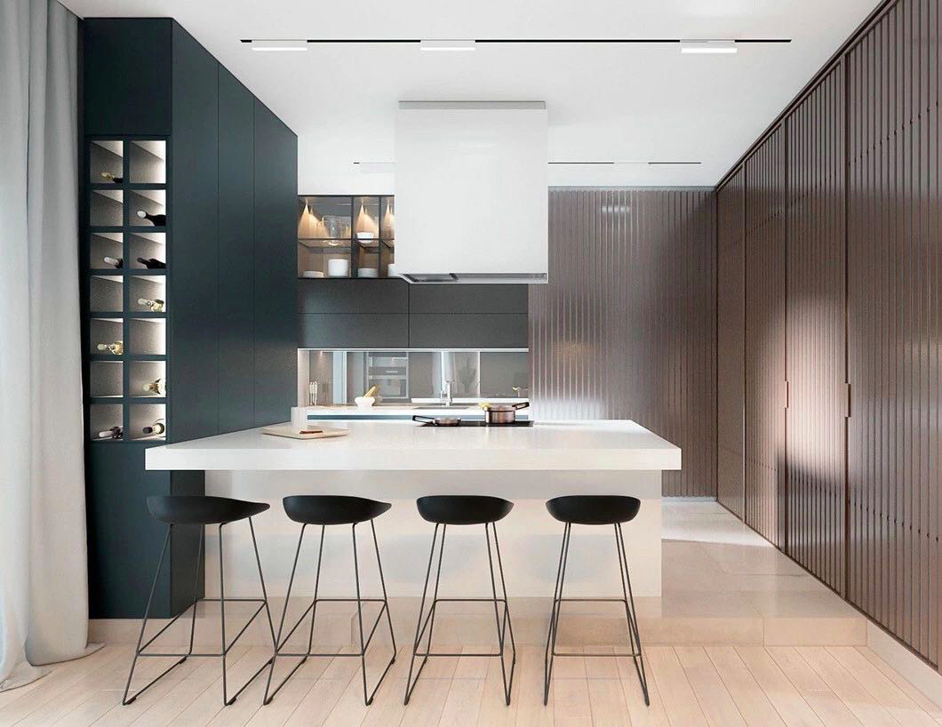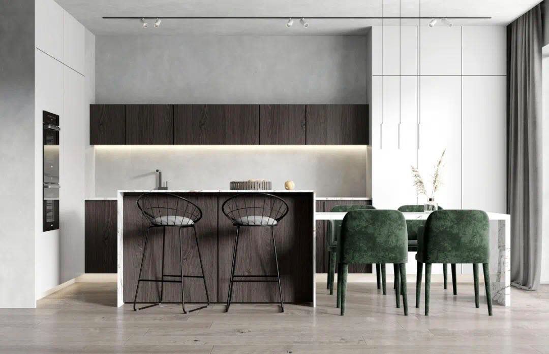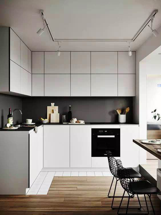 把收納做成隱藏式,柜門外面可以做無拉手設計,即使你家廚房只有幾平米,這樣空間也會看起來更寬闊整潔,不雜不亂。